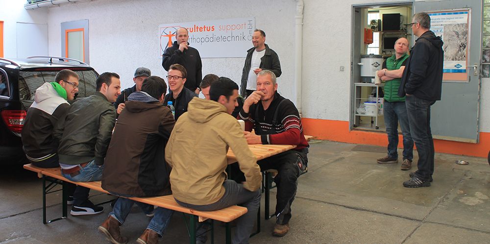 Aber das WWF sollte nicht das einzige an diesem gemütlichen Vormittag sein. Christoph Meinhardt lud spontan zu einer Besichtigung seiner Betriebsräume ein. Dadurch konnten wir uns einen kleinen Einblick in die anspruchsvolle und weit reichende Arbeit der Orthopädietechnik verschaffen.