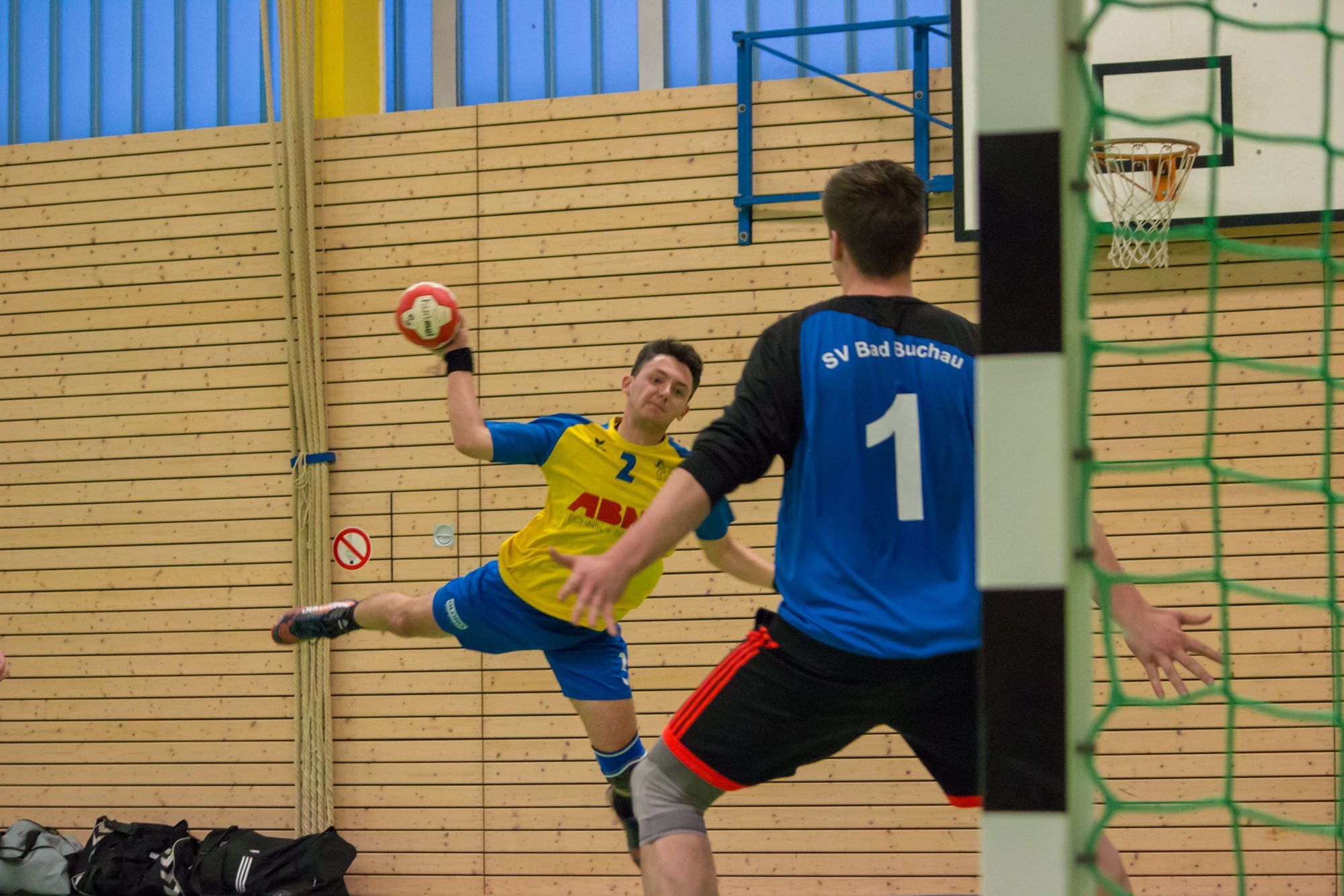 Dabei startete man nach anfänglichem 0:3 in den ersten drei Minuten furios durch und führte sogar zur Halbzeit mit zwei Toren. Allen voran Alex „Iceman“ Kienborn und Routinier Matze Schmid, die mit 16 Buden zwei Drittel der Tore erzielten und dem Spiel ihren Stempel aufdrückten. Eine gute Halbzeitansprache von Trainer Oliver Hutter führte dazu, dass zu Beginn der zweiten Halbzeit das gefürchtete Leistungstief ausblieb und der Vorsprung bis zur 51. Minute sogar auf vier Tore ausgebaut werden konnte. Wer allerdings glaube der Keks wäre gegessen, der täuschte sich gewaltig. Denn JETZT kam der Leistungseinbruch. Warum… drei ??? Im Angriffsspiel lief überhaupt nichts mehr zusammen und auch der Abwehrverbund brach förmlich auseinander. Ein ums andere Mal kamen die Gäste aus Buchau zu leichten Treffern und der hart erkämpfte Vorsprung schmolz förmlich dahin. Somit belohnte sich die Mannschaft nicht und stand wieder mit leeren Händen da. Unverständlich und unnütz, ja so kann man es als Zuschauer ausdrücken.
