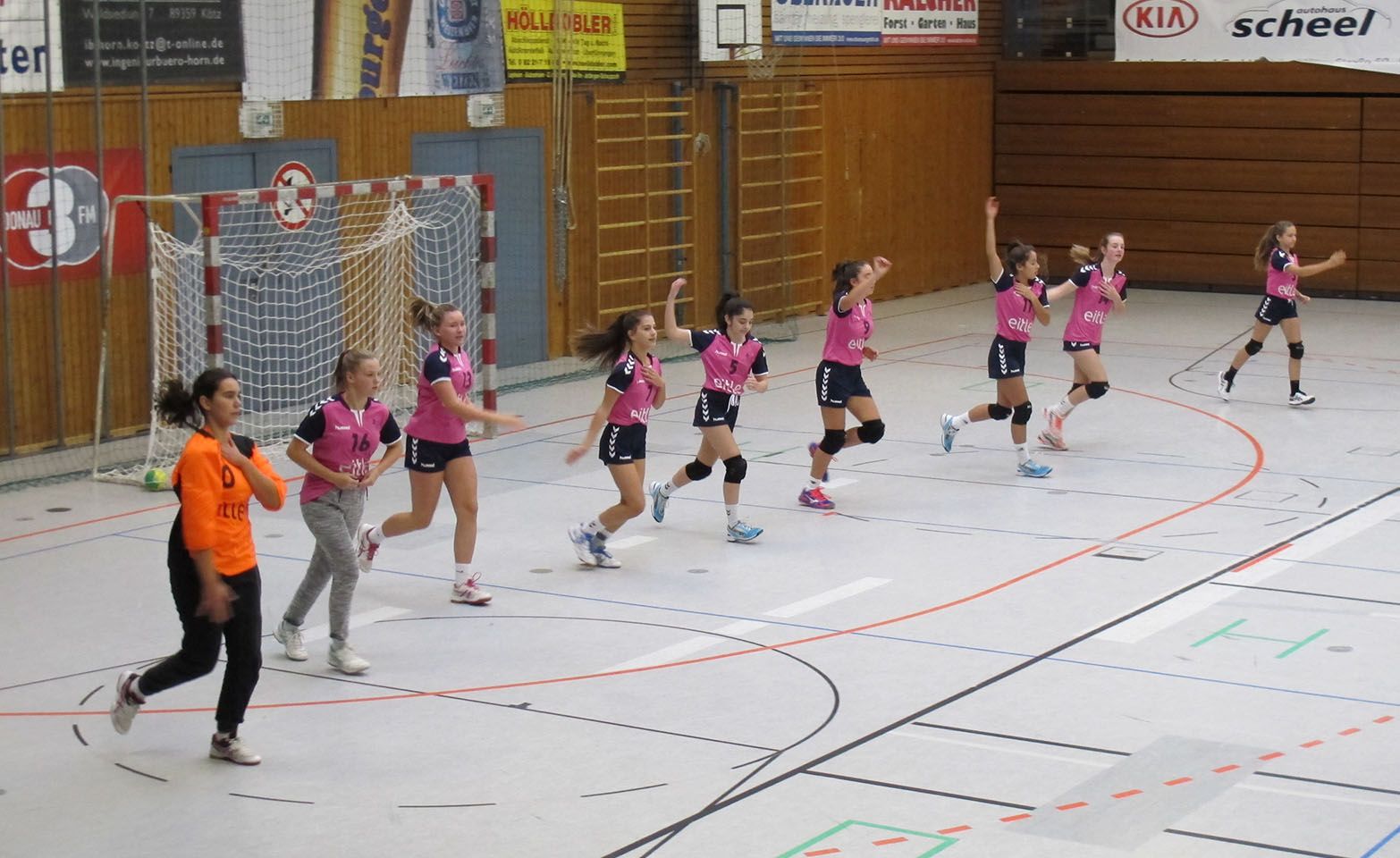 Im Spiel der C1 gegen den BHC fehlten mit Antonella und Linda absolute Leistungsträger und starke Abwehrgaranten. Auch Viola musste das Spiel alleine im Tor bestreiten, da wir auf Theresa urlaubsbedingt nicht zurückgreifen konnten. Dafür machten sich Theresia, Manuela und Mona mit auf den Weg nach Königsbrunn. In der Kabine wurde den Mädels von Anfang verdeutlicht, dass man hier keinen unnötigen Respekt vor dem unbekannten und kräftig aussehenden Gegner haben muss. Und so starteten wir auch in die Partie. Zwar lagen wir zu Beginn mit 0:2 zurück, doch wurde uns Trainern schon in den ersten 5 Minuten klar - hier geht heute was ! Körperlich war die Mannschaft dem BHC zwar sichtbar unterlegen, doch über eine aggressive und kompakte Abwehr schafften es die großen und eher langsamen Rückraumspielerinnen des BHC nur selten frei durch die Abwehrreihen der Mannschaft. Im Angriff kamen unsere Mädels immer mehr über das individuelle Vermögen im 1gegen1 und einfache Wechsel zum Erfolg. Das Schnelligkeitstraining der letzten Wochen machte sich hier bezahlt. Zwar konnten sich fast alle Spielerinnen vorallem auf den Außenpositonen durchsetzen, jedoch scheiterte man zu oft an der stark haltenden gegnerischen Torhüterin. Durch zuviele vergebene klare Chancen, ging es mit einem Gleichstand von 7:7 in die Kabine. Durchschnaufen und dann wieder Zähne zusammen beißen, auch wenn's mal weh tut, wir können das !- war hier die Ansage. Auch in der zweiten Halbzeit gab es einen spannenden Schlagabtausch, entscheidende Spielerinnen der finalen Phase waren hier Lara mit guter Spielübersicht und Julia, die richtig aufdrehte und von jeder Positon sicher einnetzten konnte.